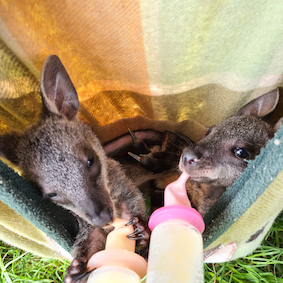 Poppet and Pippin, wallaby joeys cared for by Debbie. Photo by Debbie Ellis.