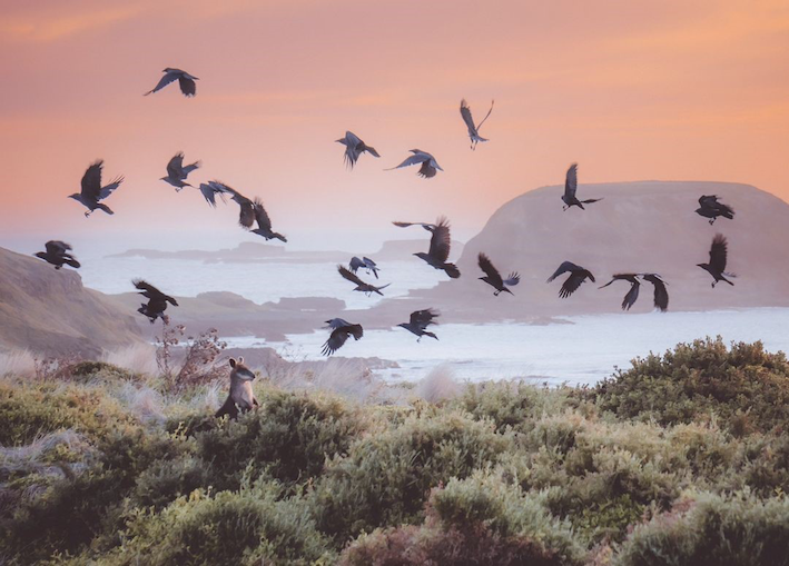 Wallaby stumbles upon a murder (of crows!) by Zee Merven on Phillip Island, Victoria