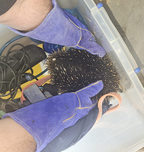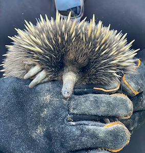 Pugsley, the echidna puggle shortly before release. Care and photo by Debbie Ellis. |