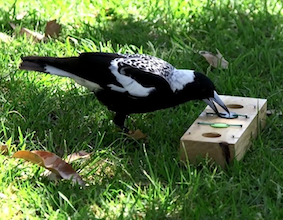 Photo: Magpie solving puzzle by Benjamin Ashton. |