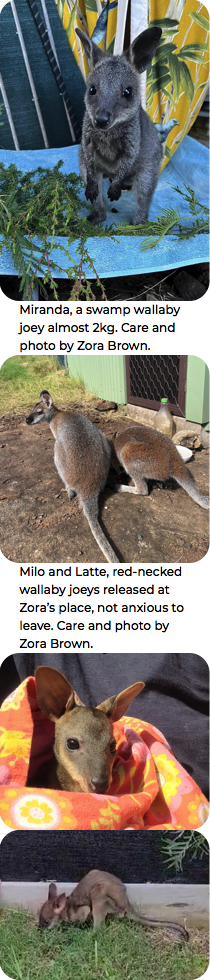 Reeves, an underweight swamp wallaby joey, rescued by Shelley Clarke. Care and photo by Debbie Ellis. |
