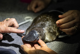 Delphi the platypus having a check-up before release. Photo by Nick Moir. |