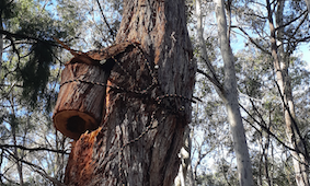 Our amazing Dave Clarke and the member of the public were able to climb and securely attach the log to a tree next to where their old home had been (see photo). So it was a housing upgrade from WIRES thank you very much!