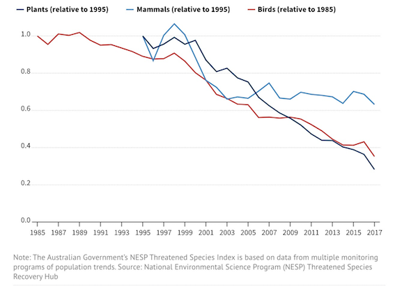 The State of Environment Report is produced every five years. The latest report, produced by 30 experts, details the decline of Australia’s environment. Its five key findings are: