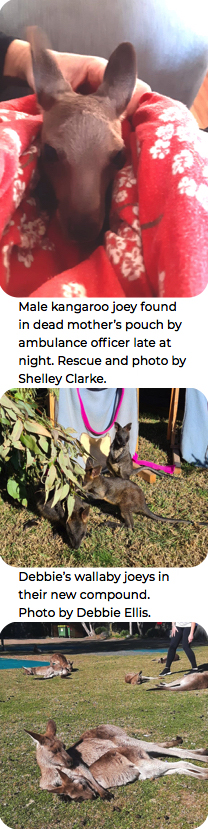They stayed with me overnight for immediate first aid and care. The next day Anica Jabkiewicz and Rachel McInnes transported them to the macropod coordinator, Beris Jenkins. They were then transferred to Wildlife Rescue South Coast.