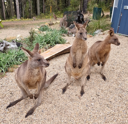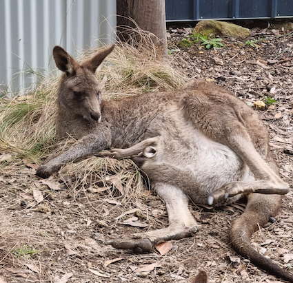 A juvenile kangaroo trapped in a tree enclosure at Bingie and released by Dagmar. Photo by Dagmar Voges.