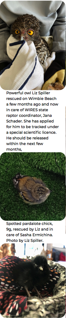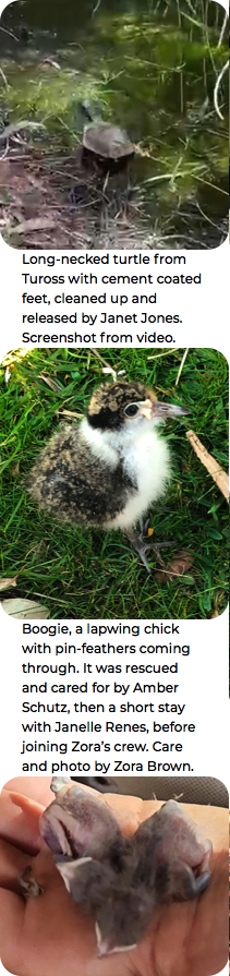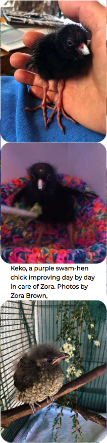 Smokey, a buff-banded rail chick, 8g, rescued from Bawley Vale Estate by Margot Hadfield. Care and photo by Zora Brown,