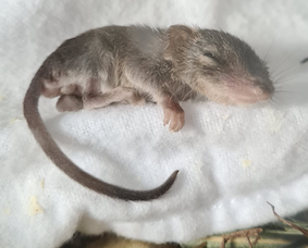 Feathertail glider joey, male, 3.65g at Tuross Head rescued after its nest was accidentally damaged by tradies. Photo by Janet Jones.