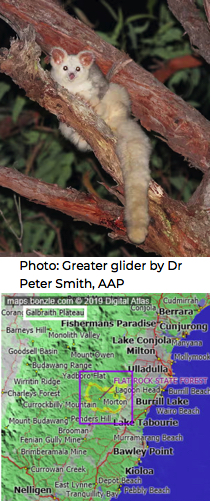 State-owned Forestry Corporation (FCNSW) has been ordered to stop logging in parts of Flat Rock state forest, near Ulladulla (see map). This was because the Environmental Protection Authority (EPA) identified an endangered greater glider den tree within 30m of logging operations. It is supposed to keep at least 50m from den trees.