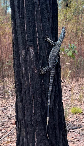 Lace monitor (goanna) released after a few days in Sandy Collins’ care. Photo by Shane O’Keefe. |