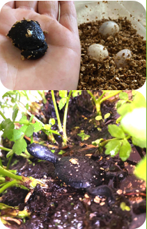 Baby turtle hatched from eggs incubated by Sandy. Photos by Sandy Collins. |
