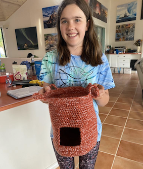 Harlow Cooper with the possum palace she made. Photo by Renate Cooper |