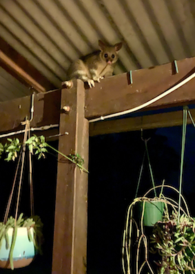 Ginger accepted her fate and now just comes for a visit every now and then, looking down on us drinking wine 🥰 She looks like a happy healthy plump possum.