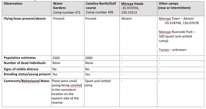 Grey-headed flying fox monitoring 30 January 2024, Eurobodalla Shire Council. |