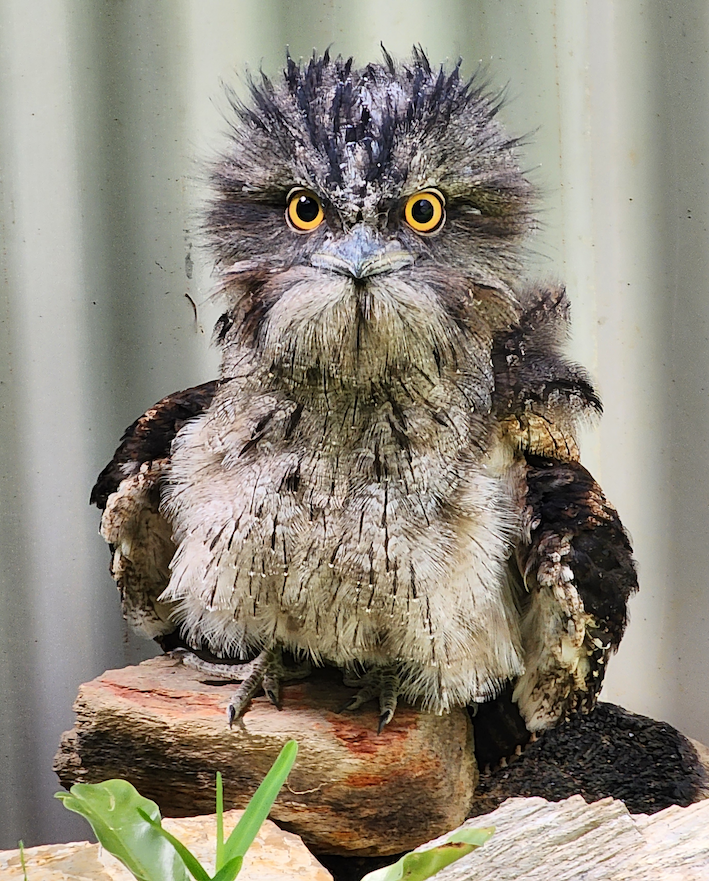 A tawny frogmouth fledgling transferred from Olympia Hendry’s care for pre-release care at Lorita and Kevin Clapson's. Photo by Sheryl Steele. |