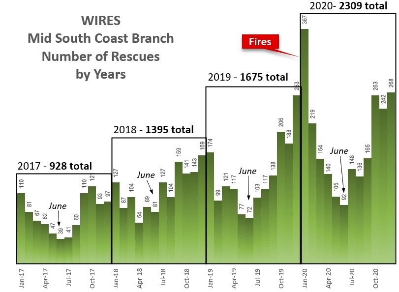 Graphs compiled by Rachel E. McInnes using data on WIRES CarerHQ website.