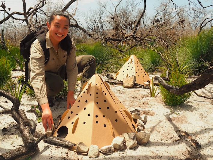 "It’s cheap, light and takes about five minutes to press out and assemble. It has six internal compartments, with doors of various sizes to let in everything from bandicoots, possums and bush rats to reptiles and beetles.” The cardboard will biodegrade over time as the bush is rejuvenated.