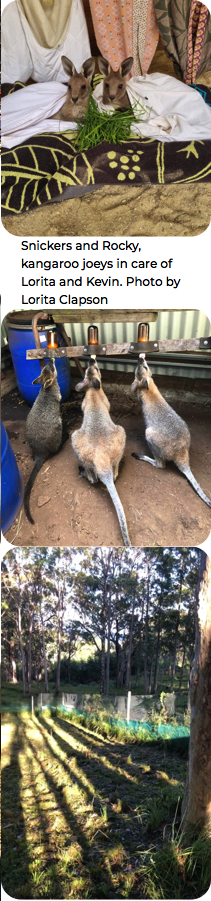 Last bottles in the nursery for wallaby joeys, Opal, Ruby and Sunny, before moving to a large pre-release enclosure at Zora's. Photo by Zora Brown and screenshot from video. |