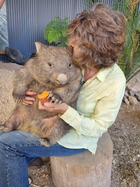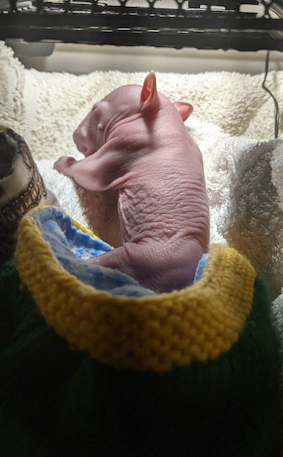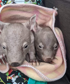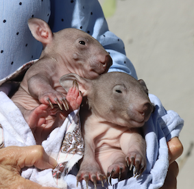Petal and Peppa came to Olympia as furless wombat joeys mid-2021. Peppa is shown in a humidity crib. Photos by Olympia Hendry. |