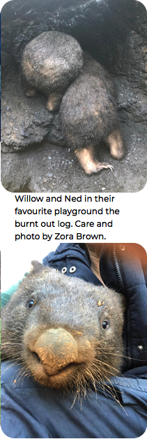 Declan, a wombat joey, has been soft released but still comes back for a cuddle. Care and photo by Zora Brown. |