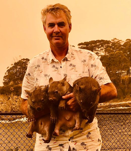 Photo: Tony de la Fosse with wombat joeys by Helena Barlow |