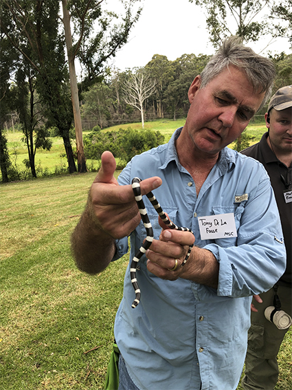 Photo: Tony de la Fosse with a Bandy Bandy snake by Sandy Collins |