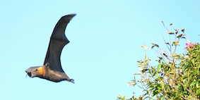Grey headed flying fox, Lucky, rescued from a netted fruit tree, about to be transferred to his new carer and several buddies in Nowra to continue healing recovery. Photo by Janet Jones. |