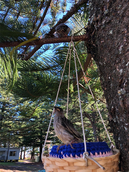 Right (or below): Two red wattlebird chicks reunited with parents at Kioloa with Zora’s help. Photos by Zora and Bella Brown.