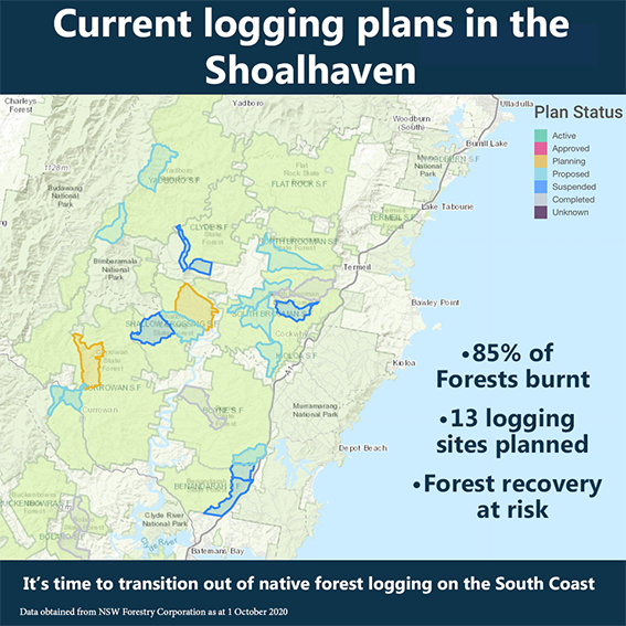 to “transition" the forestry industry in the Shoalhaven "out of native forest logging”. The aim is to "support jobs in local nature based tourism and support the recovery of iconic local animals like the Greater Glider, the Yellow Bellied Glider and the Glossy Black Cockatoo”.
