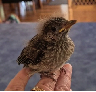 Baby red wattle bird, 7 days old 21g (above) and 10 days later (below). Photos by Debbie Ellis.