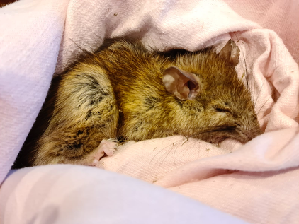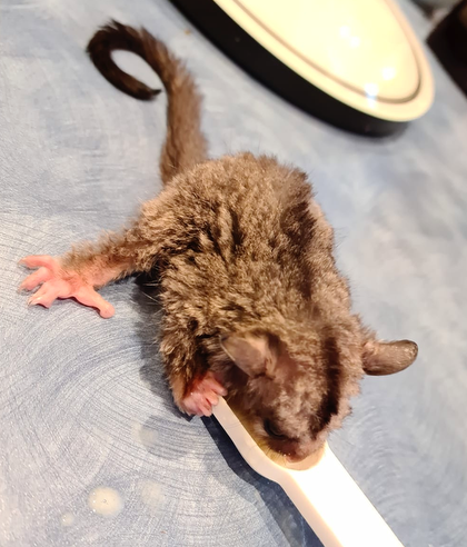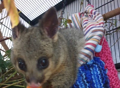 ‘Sherbet’, the brushtail possum joey going from Michelle to Allan for the final stage of his care. Photo by Michelle Edwy-Smith.