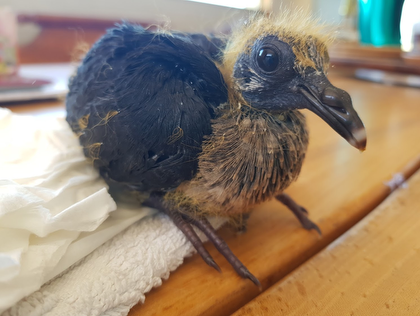 White-headed pigeon chick in care of Rachel. Photo by Rachel E Mcinnes.