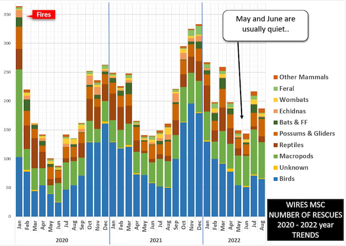 Graph by Rachel E. McInnes using data on WIRES CarerHQ website. |