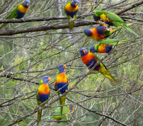 Ref: Ian Fraser, Spectacular, shrieking, sociable Rainbow Lorikeets spreading, fast, About Regional, 11 September 2023.